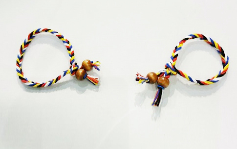 '장명루 만들기'는 빨노파흑백의 오색실로 장수와 건강을 기원하는 전통 팔찌를 만드는 체험입니다.