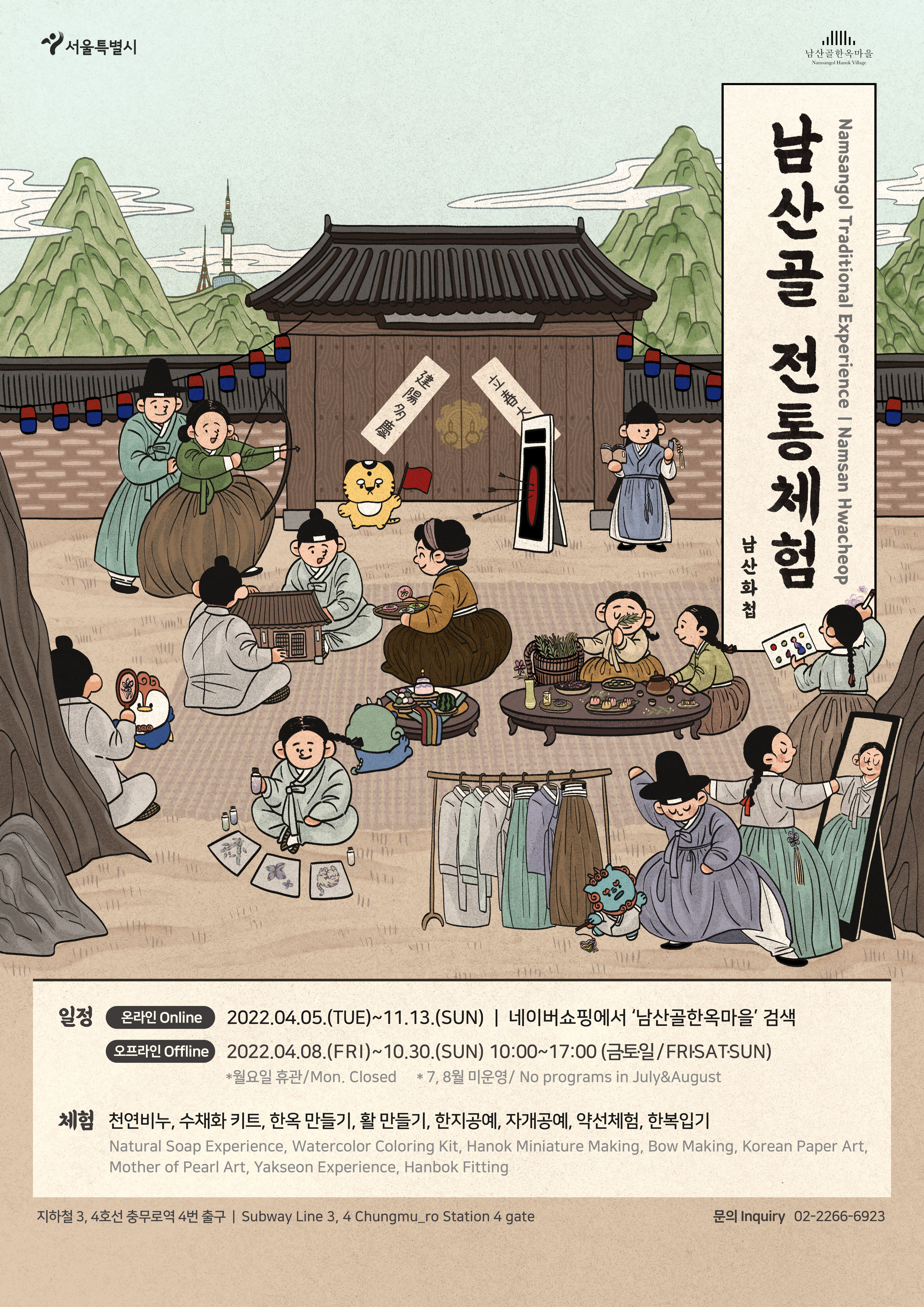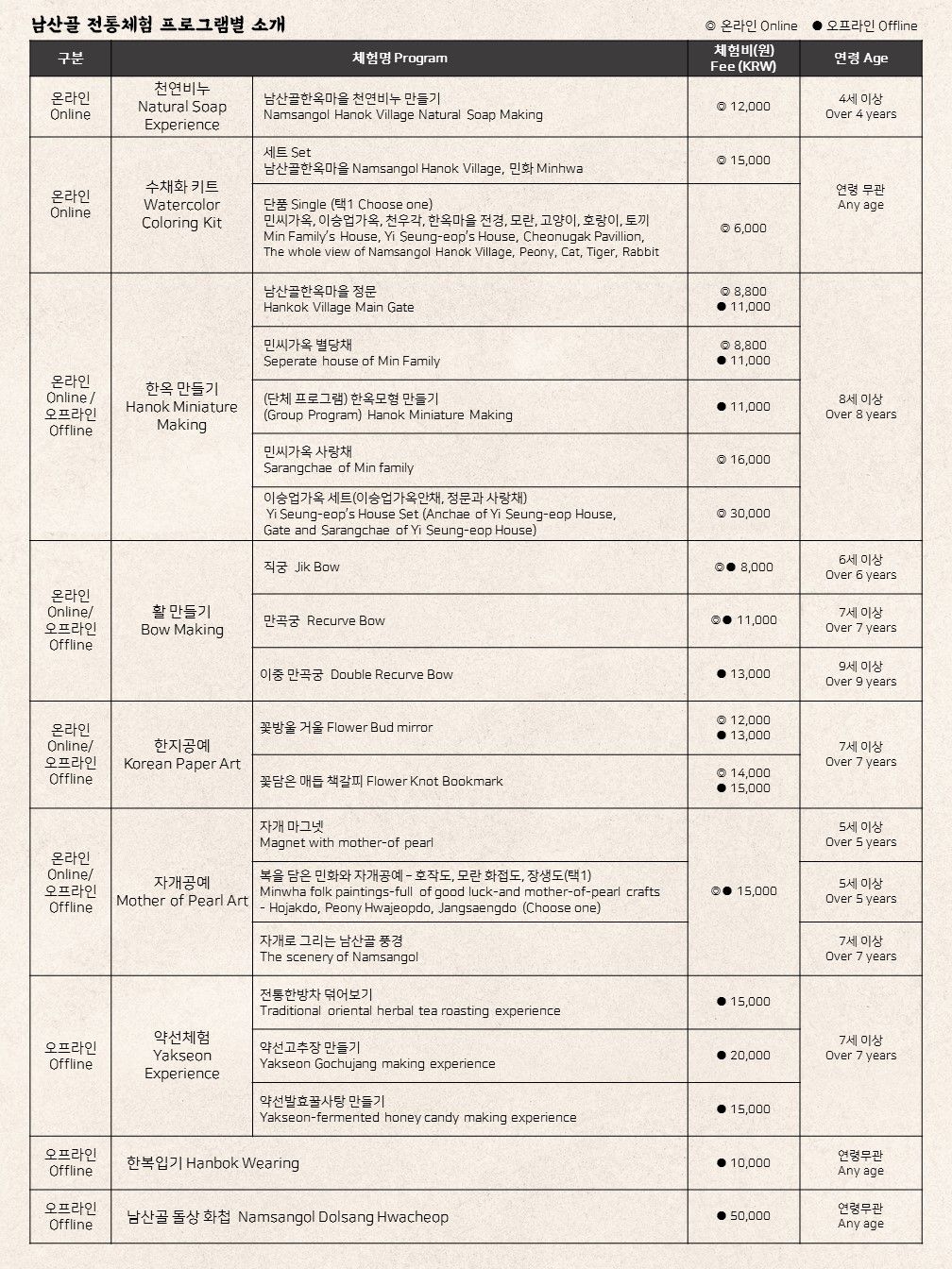 https://smartstore.naver.com/nshanok▶ 오프라인 프로그램 : 네이버 예약으로 신청 가능합니다. (운영기간 : 4월 8일~10월 30일)