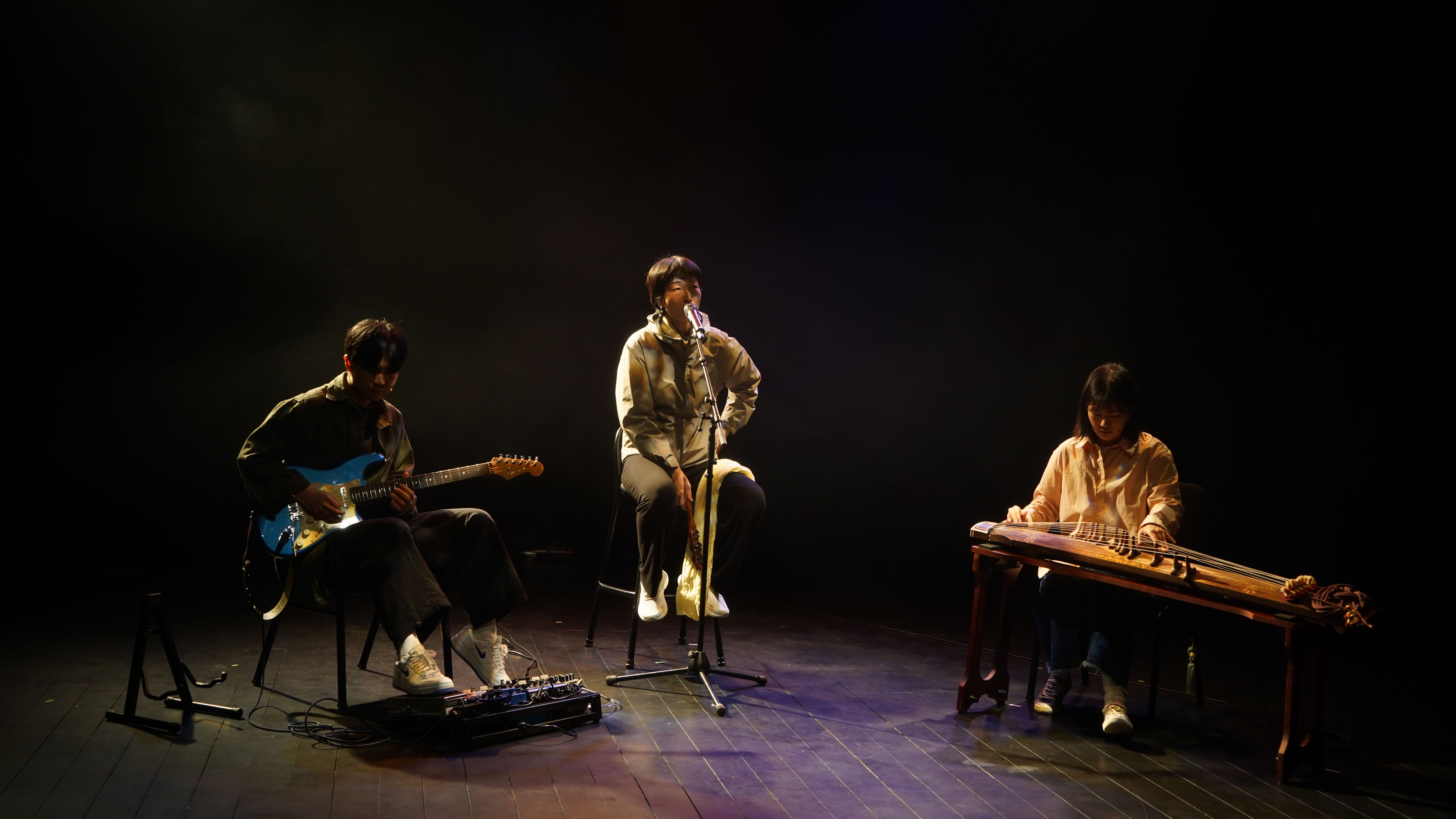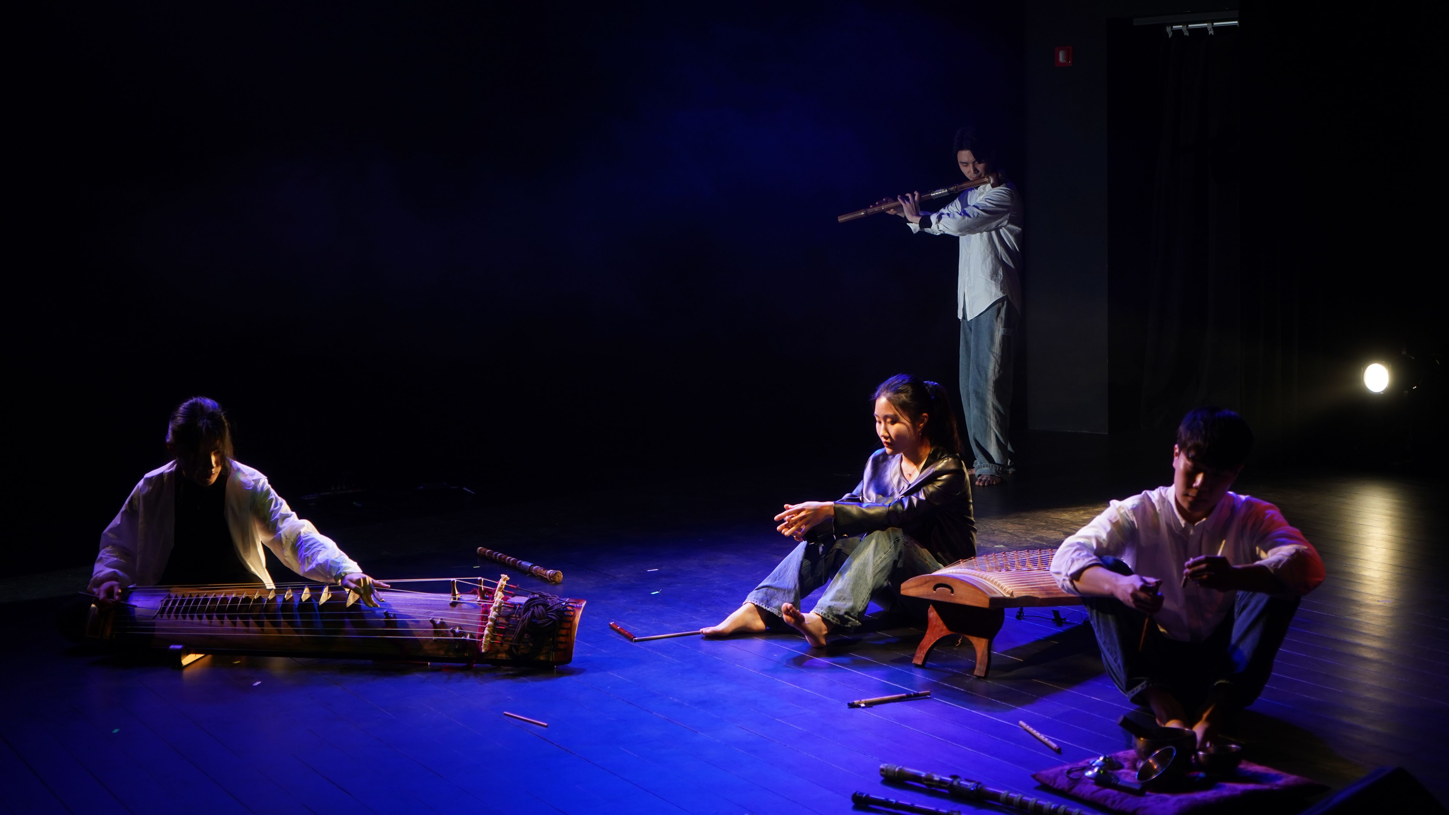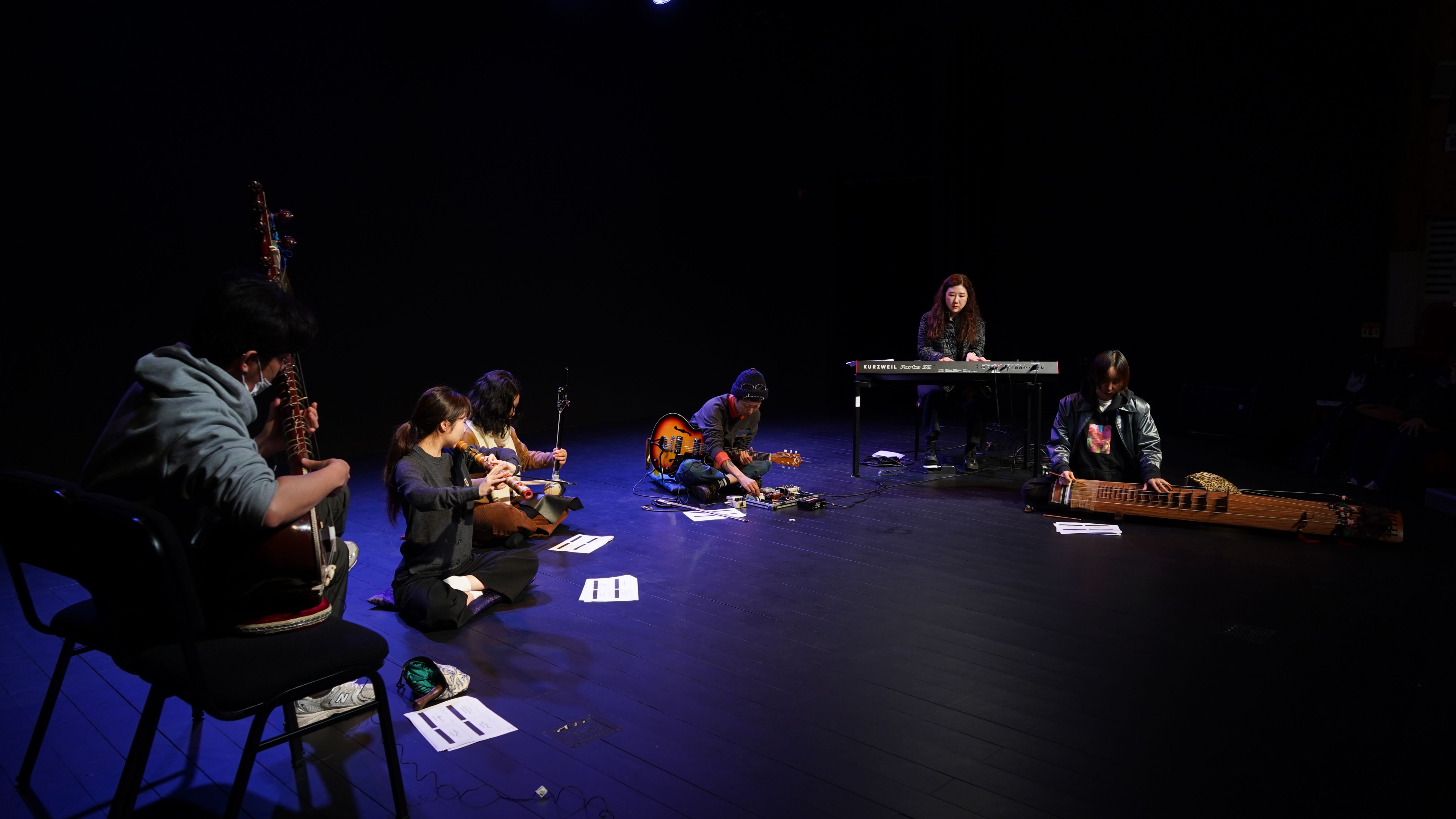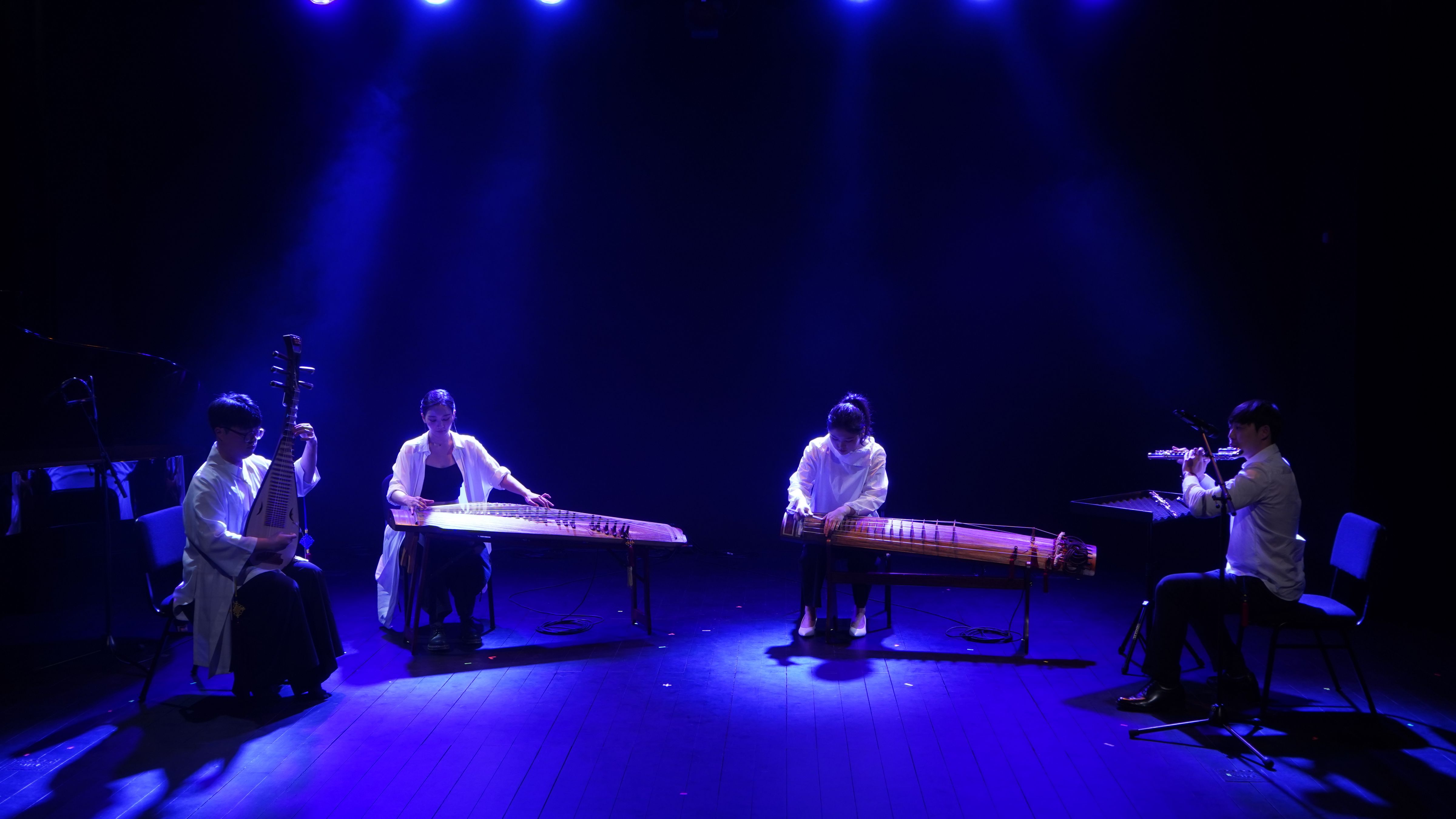 세 번째 무대는 김정우(대금), 김희원(가야금), 이수아(무용), 정하은(거문고), 차승현(피리)이 ‘퍼포먼스’라는 콘셉트를 가지고 등장했다. ‘등장했다’라고 표현한 이유는 말 그대로 연주자가 각각의 방식으로 무대에 등장했기 때문인데, 이는 많은 관객의 집중을 한데 모았다. 객석과 무대의 경계 지점, 혹은 관중의 시선이 닿지 않는 곳에서 연주하는 등, 무대를 넓게 쓰는 연출이 돋보였으며, 퍼포먼스라는 특색답게 무용수가 연주하고 있는 주자의 몸을 밀치고 이동시키며 예측 불가능한 소리를 발생시켰고 그로 인한 농도 짙은 긴장감이 돋보이는 무대였다.